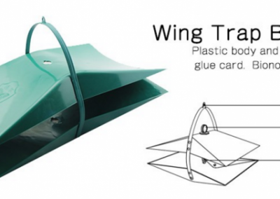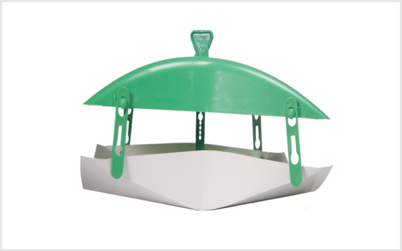 Esta armadilha é constituída por um corpo de plástico, devendo ser colocada no seu interior uma placa de cartão impermeável com cola para onde os insetos serão atraídos e permanecerão presos.